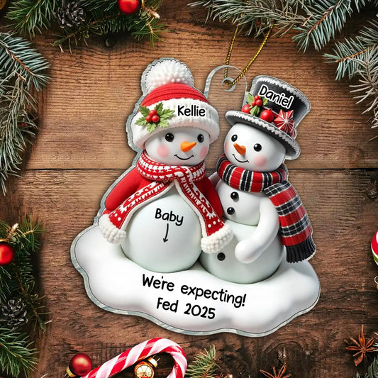 Snowman Couple Expecting Parents Pregnancy Announcement 3D Effect Keepsake Personalized Acrylic Ornament