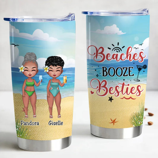 20oz Stainless Steel Insulated Tumbler - Personalized Beaches Booze Besties