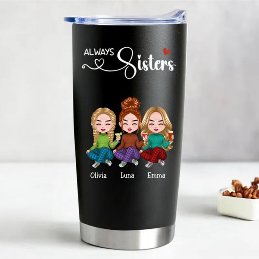 20oz Personalized Stainless Steel Tumbler - Sisters Forever (BL)