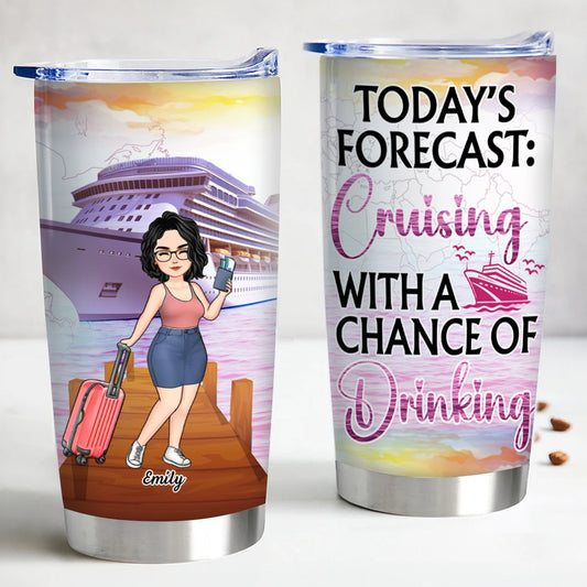 20oz Travel Lovers - Today's Forecast: Cruising With A Chance Of Drinking - Personalized Tumbler (TB)