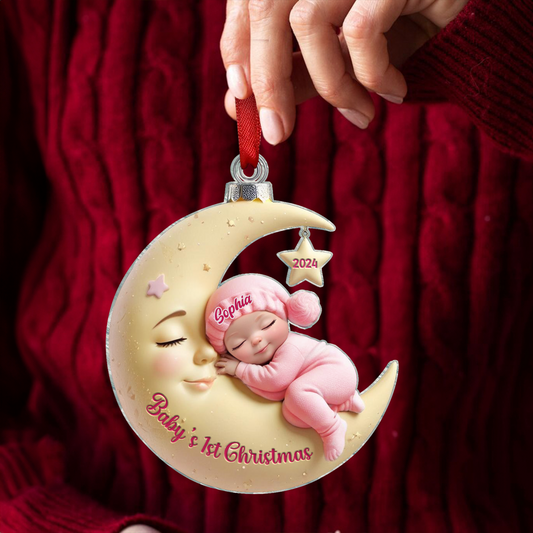 3D Effect Baby On Moon First Christmas 1st Christmas Keepsake Personalized Acrylic Ornament
