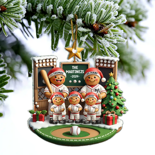 3D Effect Baseball Gingerbread Family On Field Sport Lover Personalized Acrylic Ornament