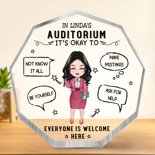 Teacher - It‘s Okay Everyone Is Welcome Here - Personalized Hexagon Acrylic Plaque