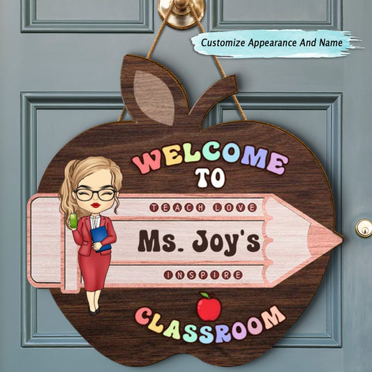 Teacher - Welcome To My Classroom - Personalized Shaped Wood Sign