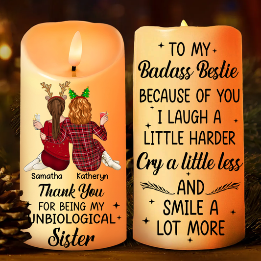 Thank You For Being My Unbiological Sisters - Personalized Flameless LED Candle