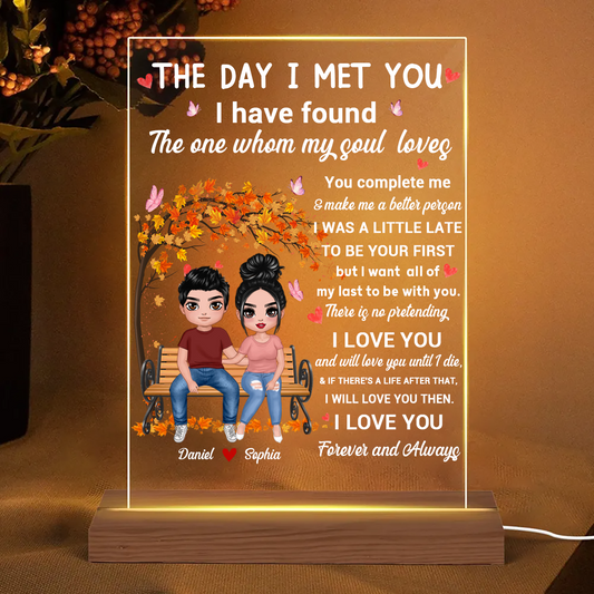 The Day I Met You Couple Personalized Plaque LED Night Light, Acrylic LED Lamp, Valentine‘s Day Gift For Him, For Her