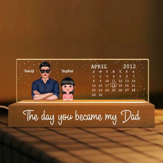 The Day You Became My Dad Calendar Date Personalized Acrylic Block LED Night Light, Perfect Father's Day Gift For Husband