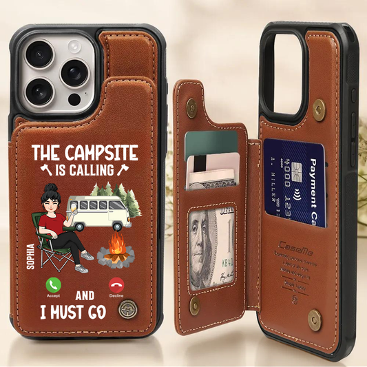 The Campsite Is Calling - Personalized Leather Flip Wallet Phone Case