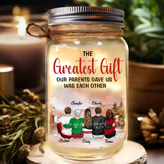 The Greatest Gift Our Parents Gave Us Was Each Other - Personalized Mason Jar Light