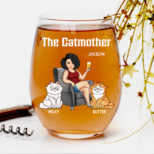The Cat Mother - Personalized Stemless Wine Glass