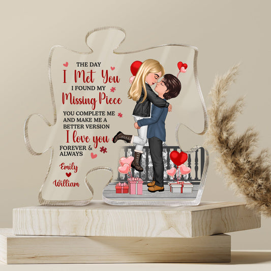 The Day I Met You I Found - Personalized Puzzle Shaped Acrylic Plaque