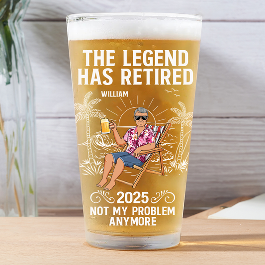 The Legend Has Retired Not My Problem Anymore - Personalized Beer Glass