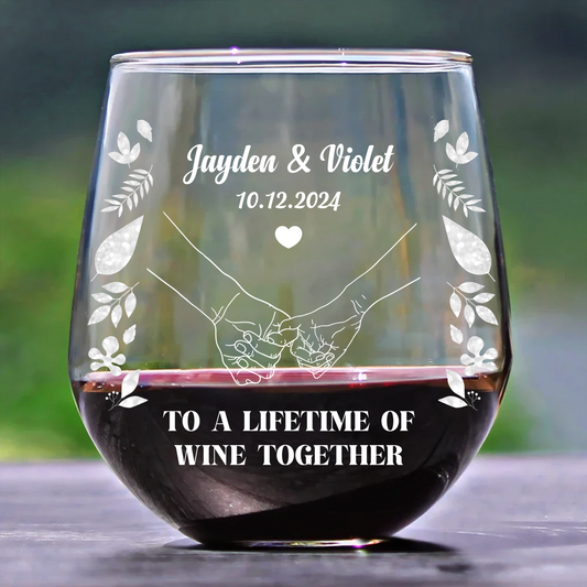 To A Lifetime Of Wine Together, Wedding Gift - Personalized Steamless Wine Glass