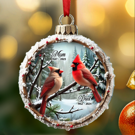 Winter Scene Memorial Cardinal Sympathy Gift Remembrance Keepsake 3D Effect Personalized Acrylic Ornament