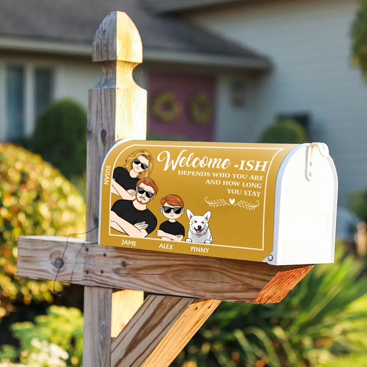 Welcome-ish Depends Who You Are Couples Family Cats Dogs - Personalized Mailbox Cover