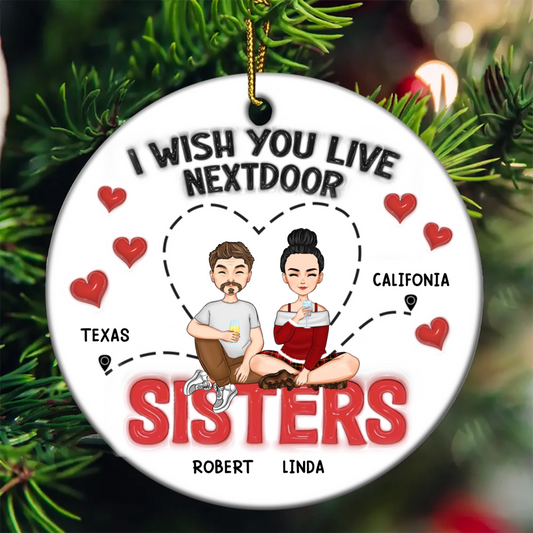 Wish You Lived Next Door Besties Friends Sisters Personalized Ornament