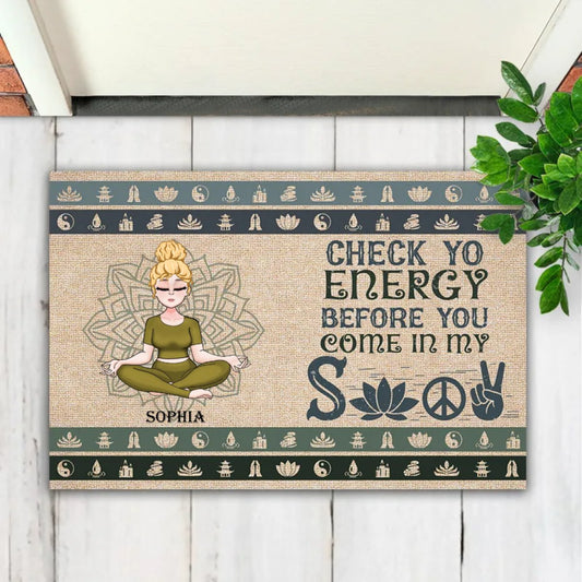 Yoga Lovers - Check Yo Energy Before You Come In My Shit - Personalized Doormat