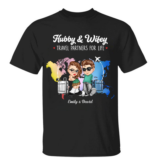 Y2K Couple Hubby & Wifey Travel Partners For Life - Personalized T Shirt