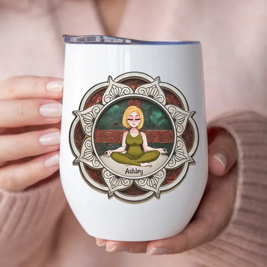 Yoga Lovers - Yoga Mandala - Personalized Wine Tumbler