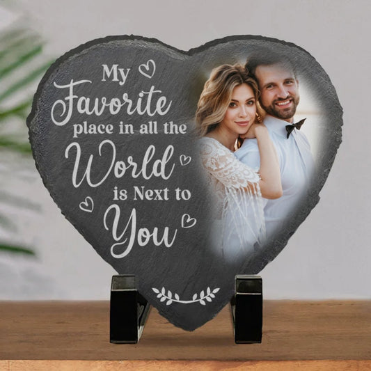 Couple - My Favorite Place In All The World Is Next To You - Personalized Shaped Stone With Stand