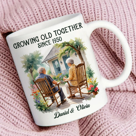 Couple Sitting On The Porch Growing Old Together Since Personalized Mug, Heartfelt Valentine's Day Gift For Couple, For Him, For Her, Husband, Wife