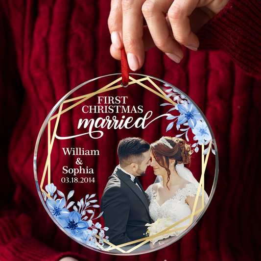Custom Photo First Christmas Married - Personalized Acrylic Ornament