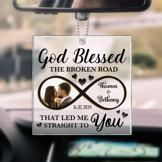 Custom Photo God Blessed The Broken Road Couples - Personalized Acrylic Car Hanger