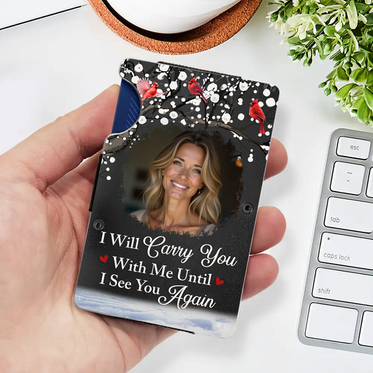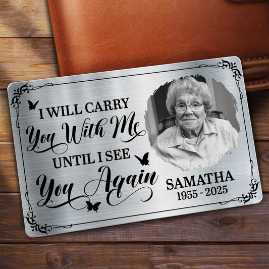 Custom Photo I Will Carry You Until I Can See You Again - Personalized Aluminum Wallet Card