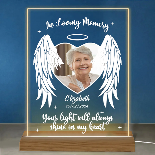 Family - Custom Photo Your Light Will Always Shine In My Heart - Personalized Acrylic LED Night Light