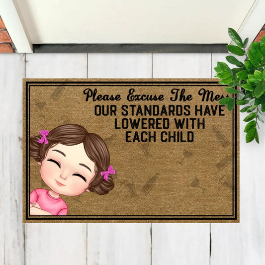 Family - Please Excuse The Mess Our Standards - Personalized Doormat