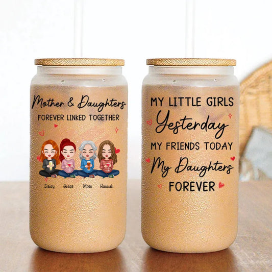 Mother - Mother And Daughters Forever Linked Together - Personalized Glass Can