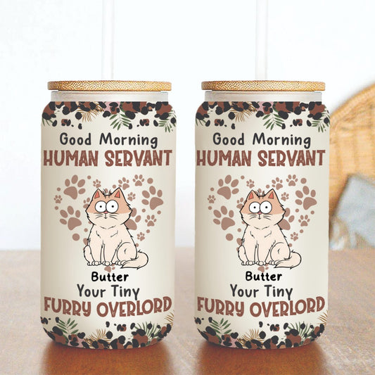 Pet Lovers - Good Morning Human Servant - Personalized Glass Can