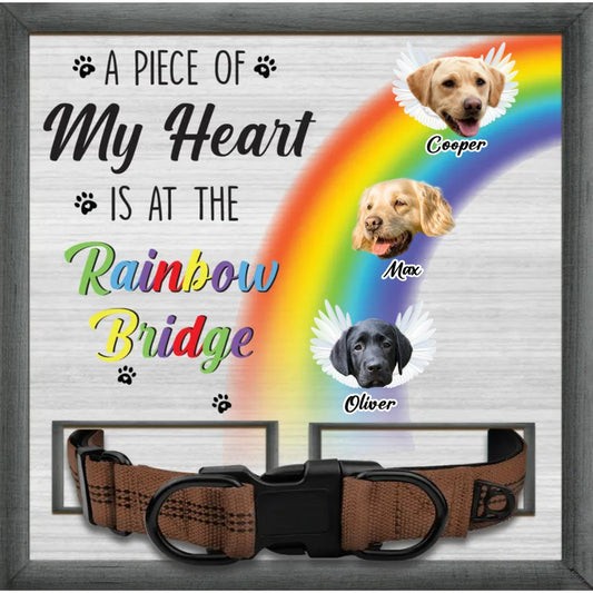 Pet Lovers - Custom Photo A Piece Of My Heart Is At The Rainbow Bridge - Personalized Pet Loss Sign, Collar Frame