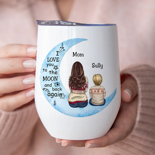 Mother - I Love You To The Moon And Back Again - Personalized Wine Tumbler (M7)