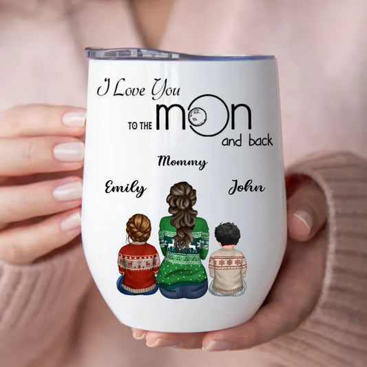 Family - I Love You To The Moon And Back - Personalized Wine Tumbler