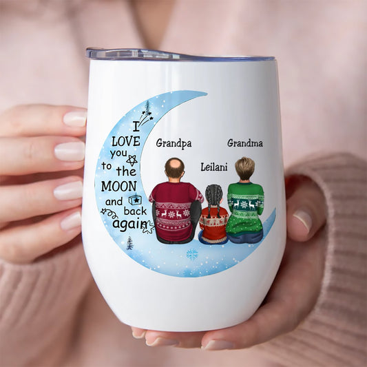 Family - I Love You To The Moon And Back Again - Personalized Wine Tumbler