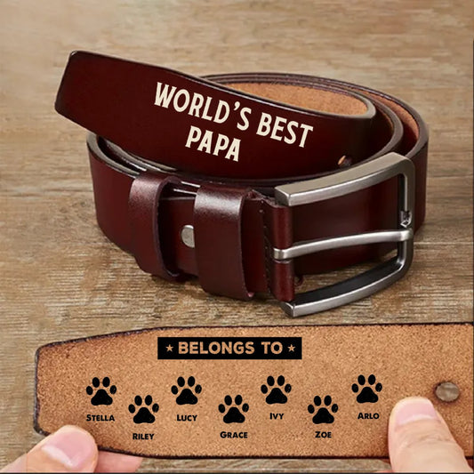 Family - World's Best Papa Belongs To Grandkids - Personalized Engraved Leather Belt