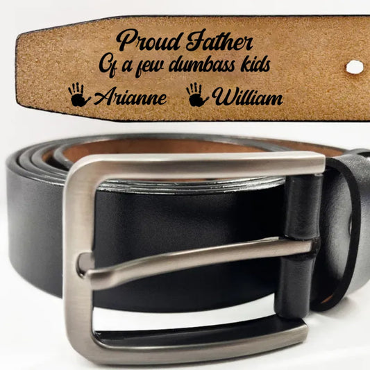 Father - Proud Father Of Few Kids - Personalized Engraved Leather Belt