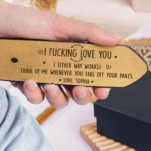 Either Way Works I Love You - Personalized Engraved Leather Belt