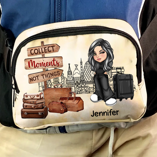 Collect Moments Not Things Travel Is My Therapy - Personalized Crossbody Belt Bag