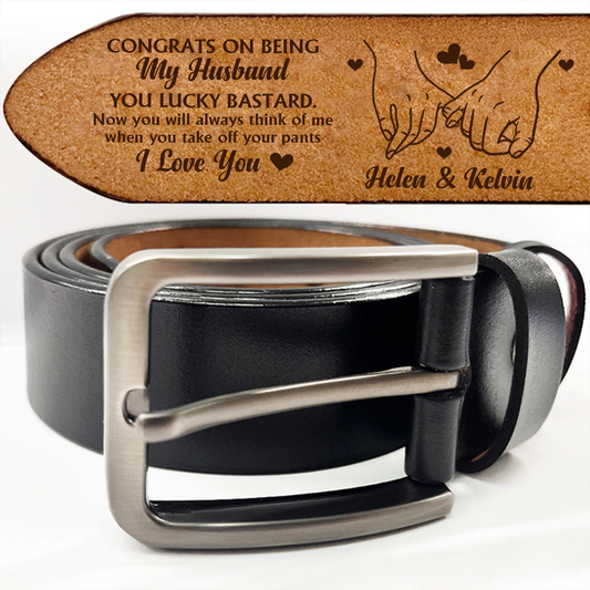 Couple - Congrats On Being My Husband You Lucky Bastard - Personalized Engraved Leather Belt (HJ)
