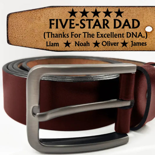 Father - Five - Star Dad Thanks For The Excellent DNA - Personalized Engraved Leather Belt