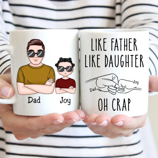 Like Father Like Daughter Oh Crap, Fist Bump Handshake - Personalized Mug