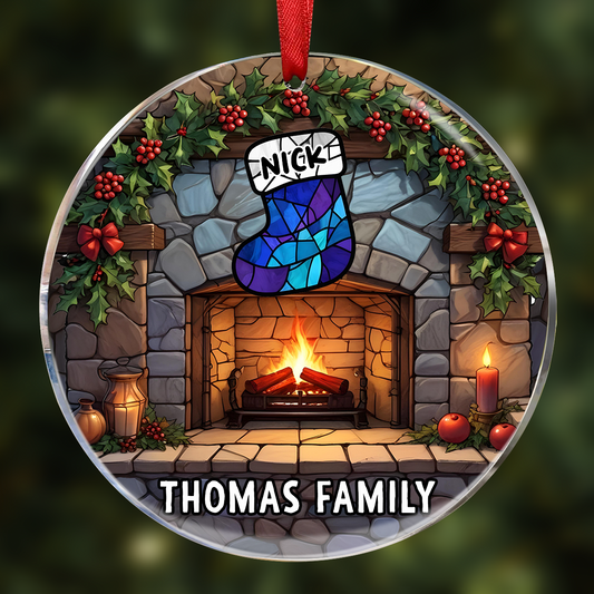 Christmas Stocking On Fireplace Family - Personalized Circle Acrylic Ornament
