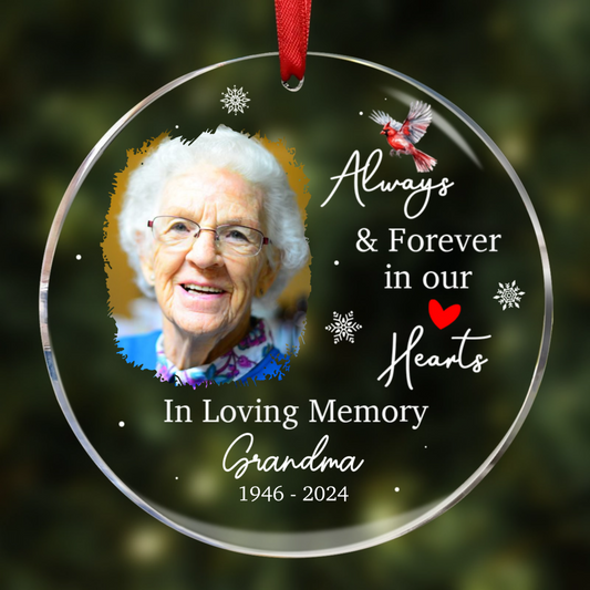 Custom Photo Always & Forever In Our Hearts - Personalized Circle Acrylic Ornament