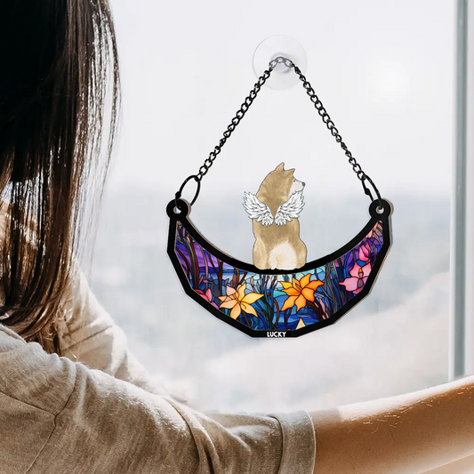 Memorial Dogs Cats Sitting On The Moon - Personalized Window Hanging Suncatcher Ornament