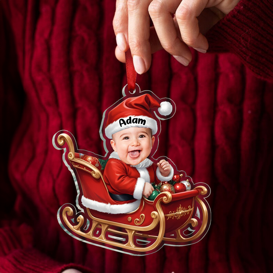Custom Photo Baby In Sleigh - Personalized Custom Shaped Acrylic Ornament
