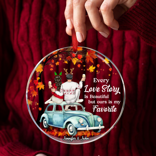 Christmas Every Love Story Is Beautiful - Personalized Circle Acrylic Ornament