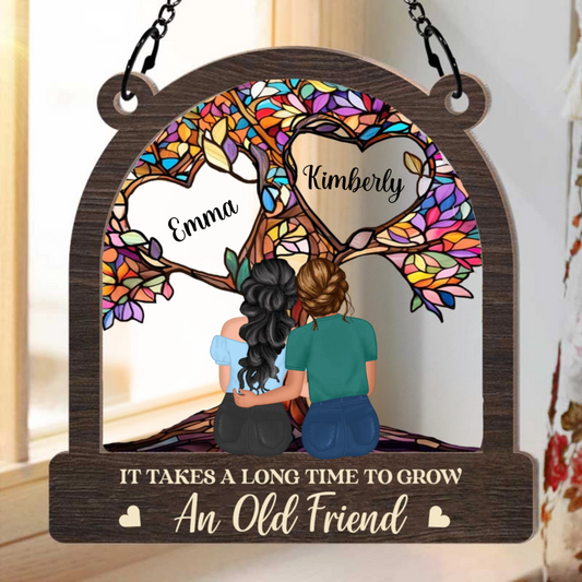 Grow An Old Friend Tree Of Life - Personalized Window Hanging Suncatcher Ornament