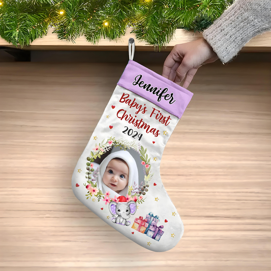 Custom Photo New Baby My First Christmas - Christmas Gift - Personalized Christmas Stocking